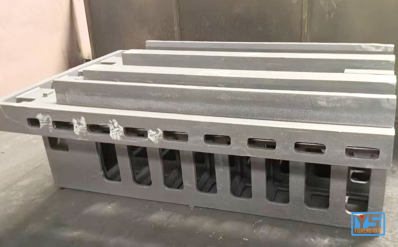 采用树脂砂造型+热振复合时效+导轨高频淬火工艺。树脂砂造型无砂眼,毛坯合格率≥98%,无需二次打磨;热振复合时效可消除99%残余应力,长期使用尺寸稳定性高;导轨高频淬火至HRC45-55,耐磨性较普通处理提升3倍。完整工艺链路为:制模→树脂砂造型→阶梯式浇注→复合时效→精铣→无损检测。
